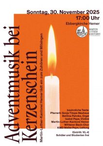 Adventmusik bei Kerzenschein Adventliche und weihnachtliche Musik zum Zuhören und zum Mitsingen, dazu besinnliche Texte. Ein schöner Start in die vorweihnachtliche Zeit mit der Martin-Luther-Kantorei und dem Wittener Bach-Chor am ersten Advent.